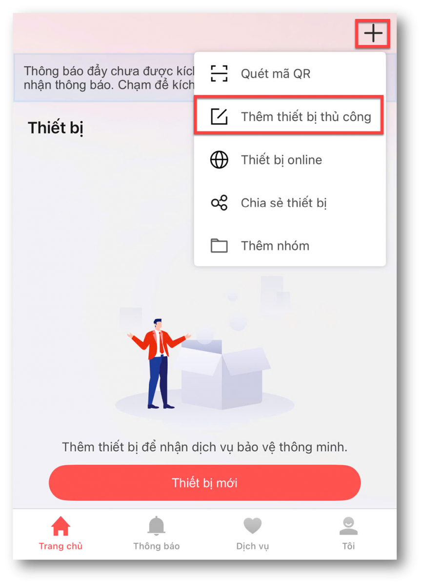 - Chọn Quét mã QR hoặc thêm thiết bị thủ công