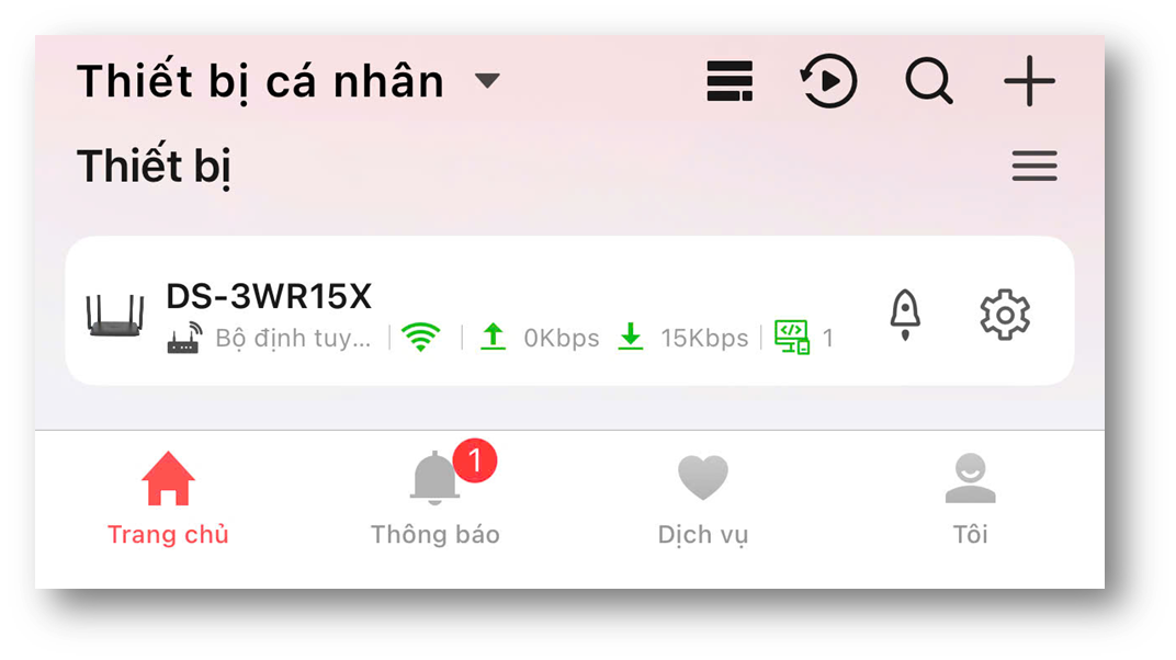 - Tại trang chủ ta đã thấy thiết bị đã được thêm vào