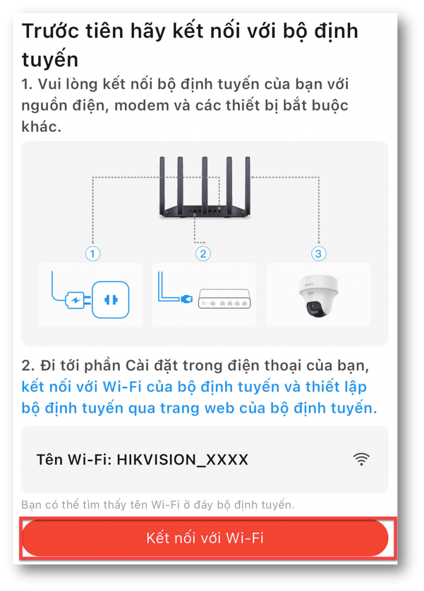 - iPhone → Cài đặt → Wi-Fi → chọn tên wifi vừa đặt (ví dụ: HIKVISION)