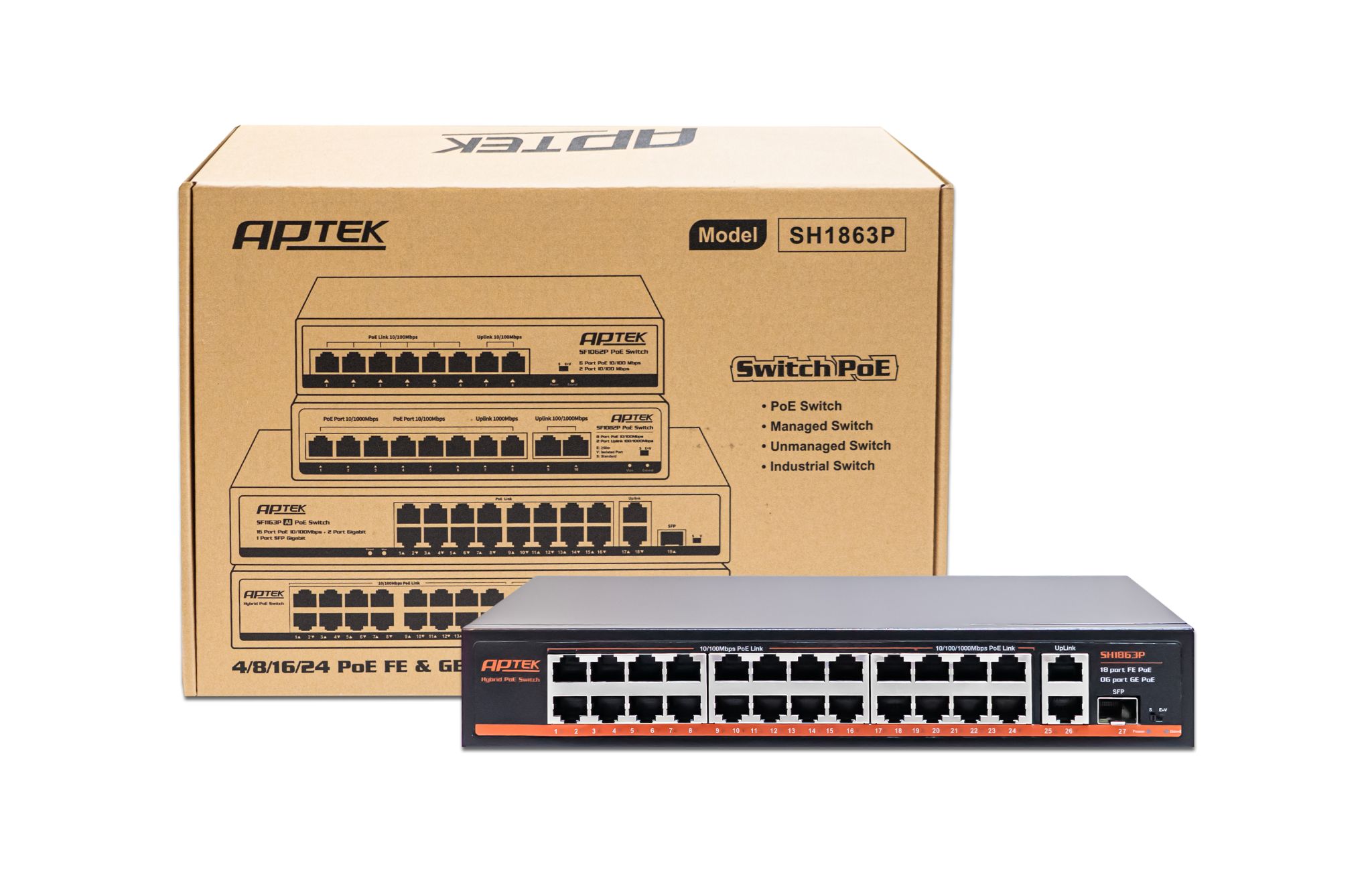 Thiết kế này giúp APTEK SH1863P trở thành một lựa chọn hấp dẫn, vừa tiết kiệm chi phí khi kết nối nhiều thiết bị khác nhau vừa đảm bảo truyền tải dữ liệu hiệu quả.