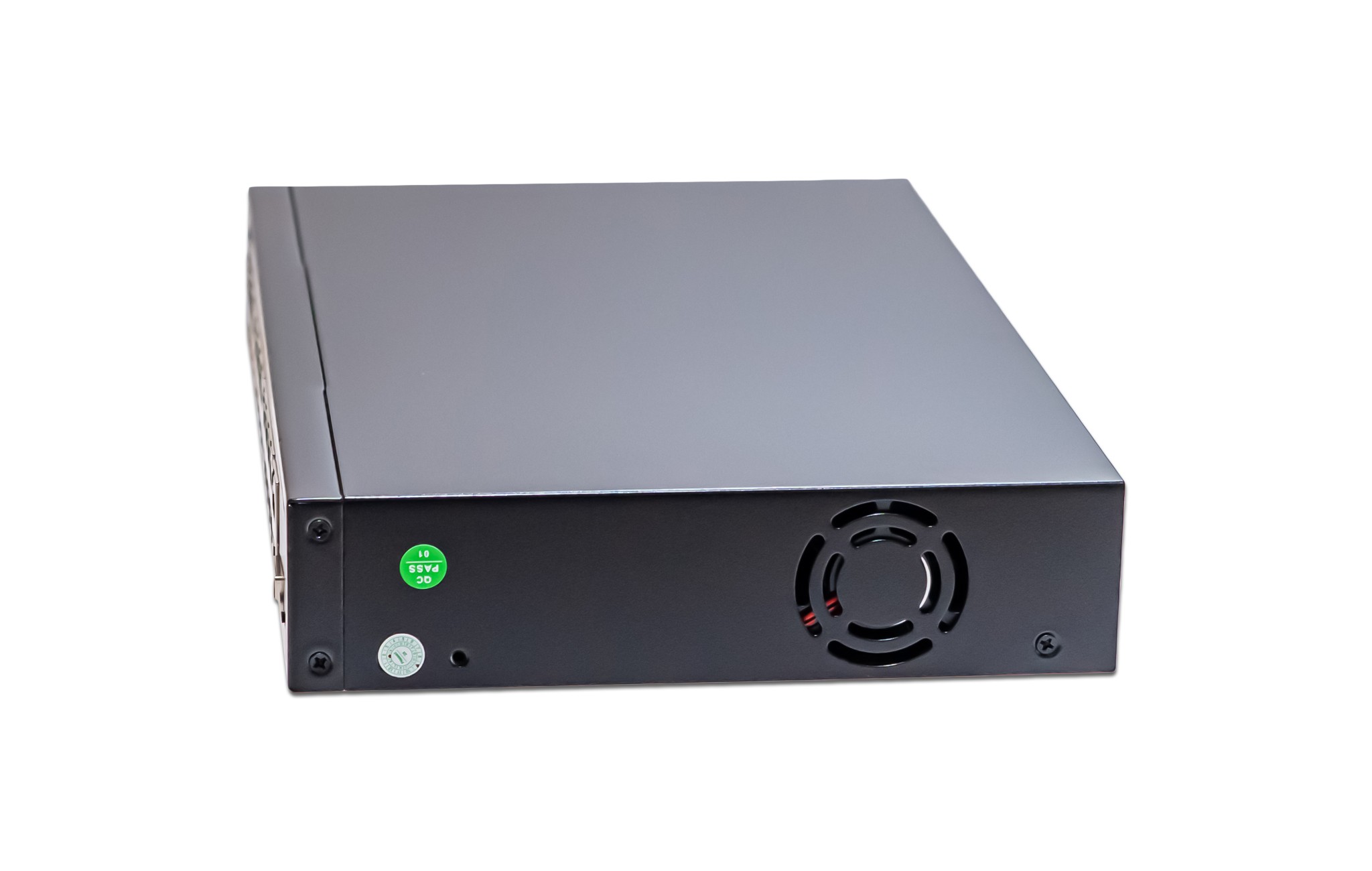- Hỗ trợ Extended mode (CCTV mode): các port PoE cô lập với nhau, chỉ kết nối với port uplink, hỗ trợ truyền tín hiệu và nguồn với khoảng cách 250m. Tốc độ truyền dữ liệu tối đa của các port PoE ở Extended mode là 10 Mbps