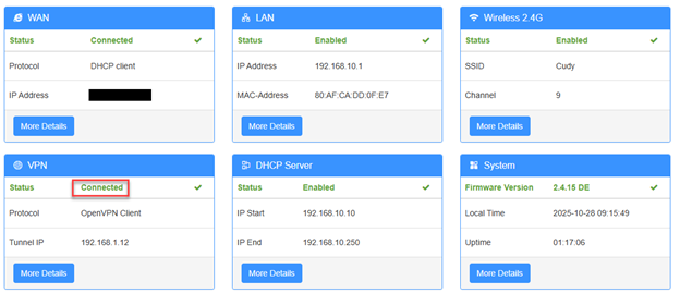 1. Reboot DrayTek và Cudy và kiểm tra lại