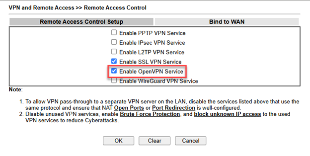 1. Kích hoạt dịch vụ OpenVPN trên DrayTek