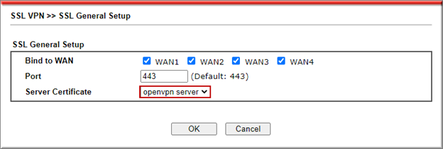 5. Vào VPN and Remote Access >> SSL VPN, Server Cetificate>> chọn openvpn server, nhấn OK5. Vào VPN and Remote Access >> SSL VPN, Server Cetificate>> chọn openvpn server, nhấn OK