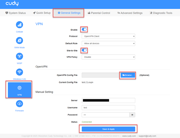 Sau đây là bài viết hướng dẫn kết nối VPN giữa LT300 và DrayTek. Sử dụng giao thức OpenVPN.