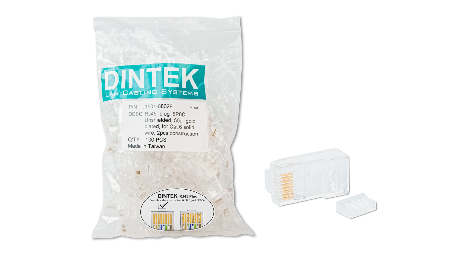 Đầu mạng RJ45 Cat.6 dạng 2 mảnh DINTEK (P/N: 1501-88028) lý tưởng cho kết nối cáp mạng Cat.6 với chất lượng vượt trội, độ ổn định cao cùng khả năng truyền dẫn tối ưu, là lựa chọn đáng tin cậy cho hạ tầng mạng doanh nghiệp và trung tâm dữ liệu.