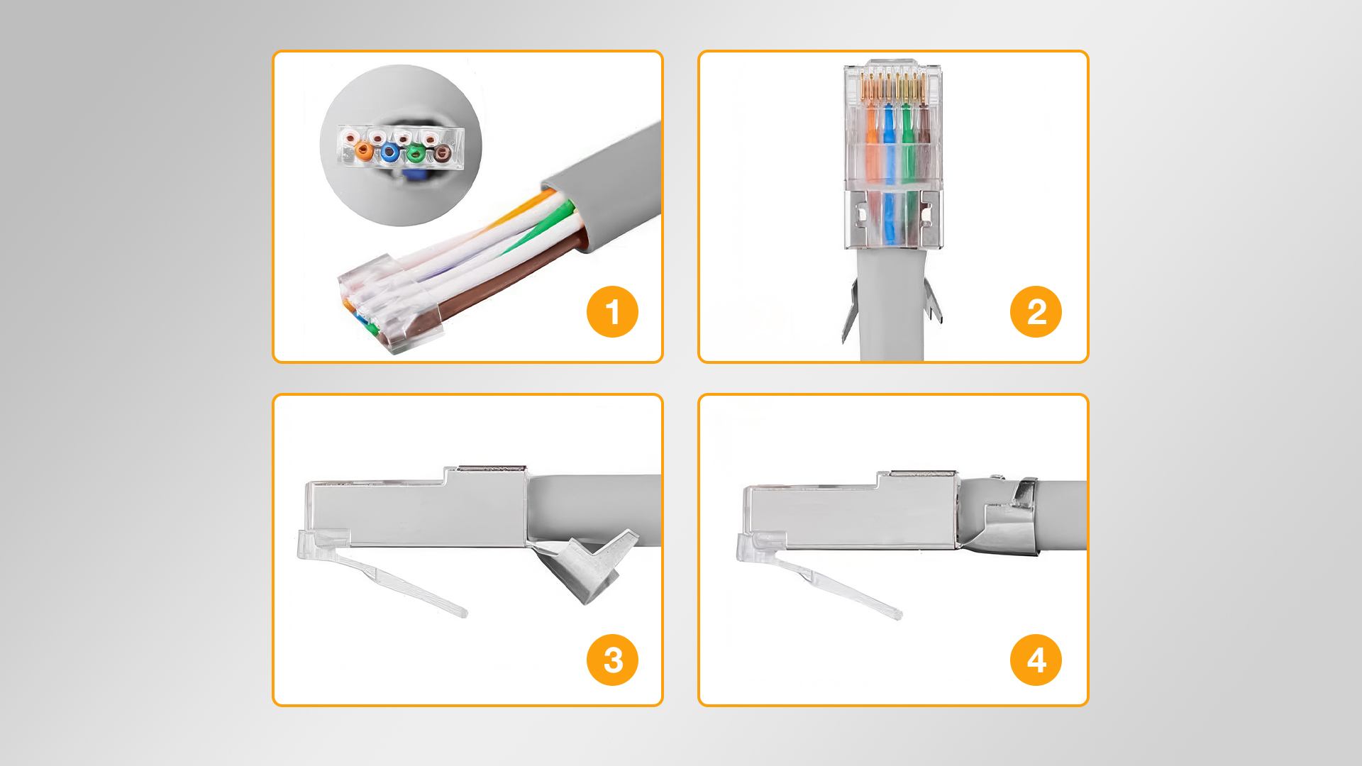 Điểm nổi bật của đầu mạng DINTEK Cat.6A FTP là thiết kế 2 mảnh, gồm đầu RJ45 và thanh định hướng dây (load bar) giúp căn chỉnh từng sợi dây đúng vị trí theo chuẩn T568A/B, giữ nguyên độ xoắn của từng cặp dây, định vị chính xác chân tiếp xúc theo tiêu chuẩn trước khi cố định chúng. Điều này giúp việc bấm đầu cáp đơn giản hơn cả với người dùng ít kinh nghiệm, hạn chế tình trạng lỗi cáp, giúp tiết kiệm chi phí và thời gian thi công cáp mạng.