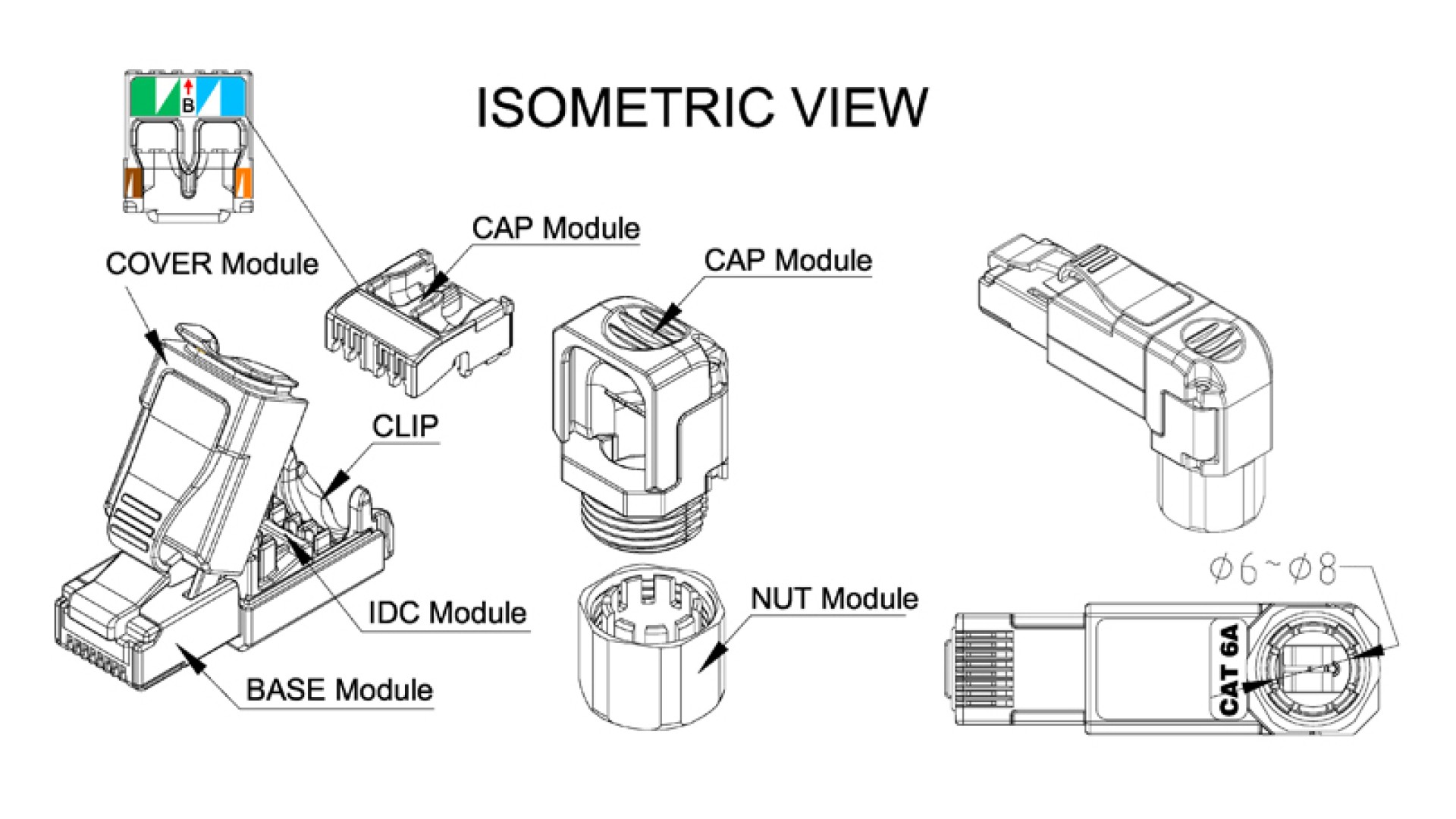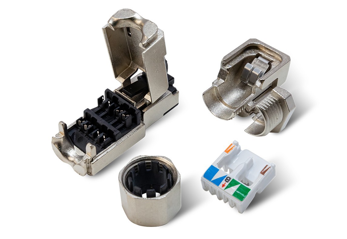 Đầu mạng RJ45 Cat.6A, xoay 4 hướng linh hoạt, hợp kim đúc chống nhiễu vượt trội, dùng trong môi trường công nghiệp