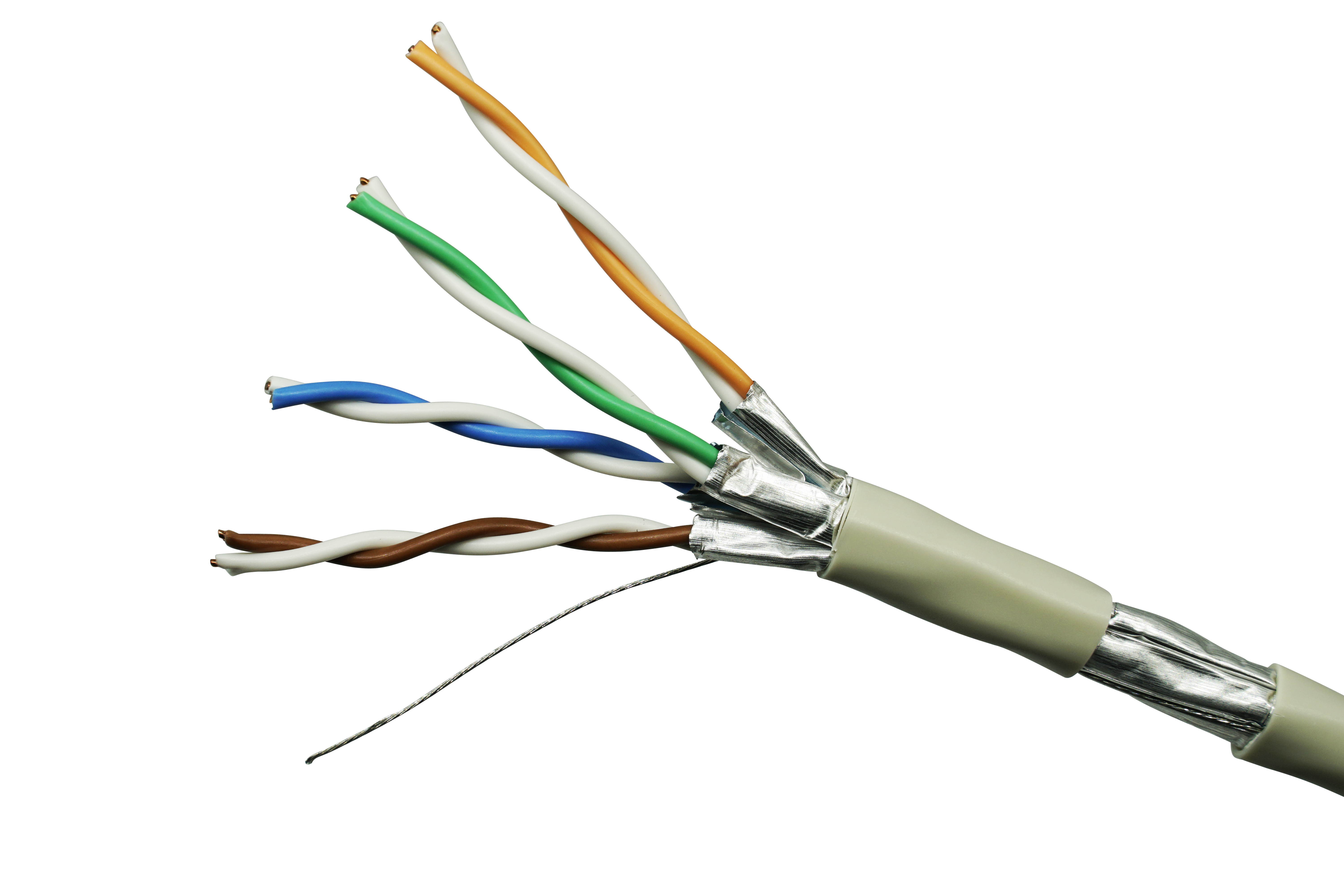 Cáp được cấu tạo từ 4 cặp dây xoắn đôi theo tiêu chuẩn, trong đó mỗi cặp dây xoắn đôi được bọc nhôm (foil) riêng biệt giúp triệt tiêu hiện tượng nhiễu xuyên âm. Thiết kế này mang lại hiệu quả chống nhiễu xuyên âm giữa các cặp dây gần như tuyệt đối, vượt trội so với cáp UTP không bọc chống nhiễu và F/UTP chỉ có một lớp chống nhiễu chung.