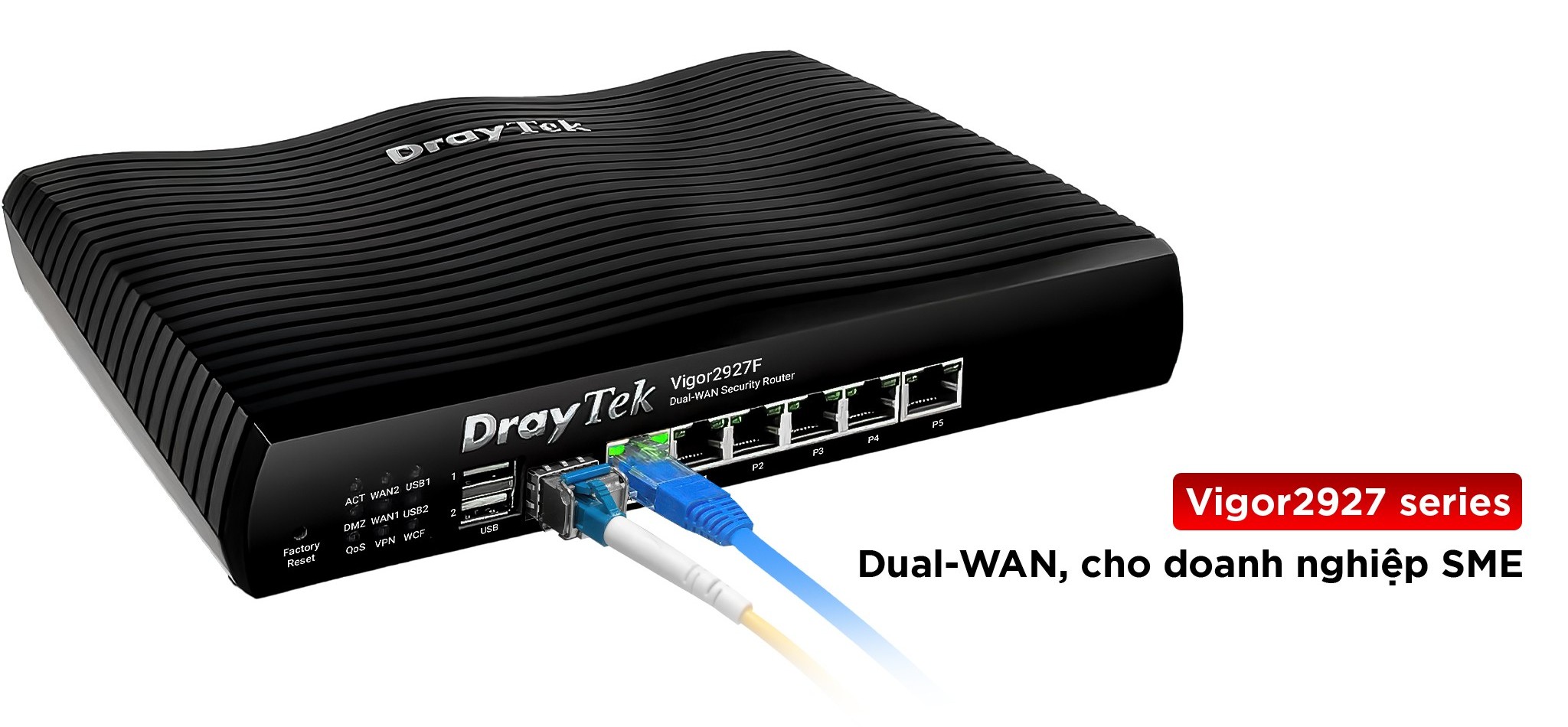 Vigor2927F có các tính năng mạnh mẽ tương tự Vigor2927, nhưng điểm khác biệt là cổng WAN1 thuần hỗ trợ kết nối quang SFP, cho phép kết nối trực tiếp đường cáp quang công nghệ AON mà không cần dùng đến thiết bị chuyển đổi quang điện (converter).