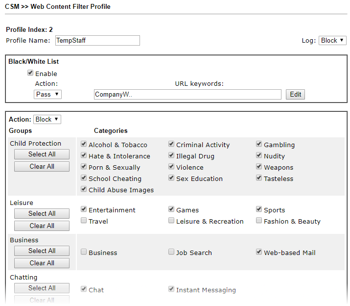 Vigor2927Lac cũng hỗ trợ lọc các trang web sử dụng giao thức mã hóa HTTPS và SSL, vốn khó kiểm soát hơn do thông tin URL đã được mã hóa.