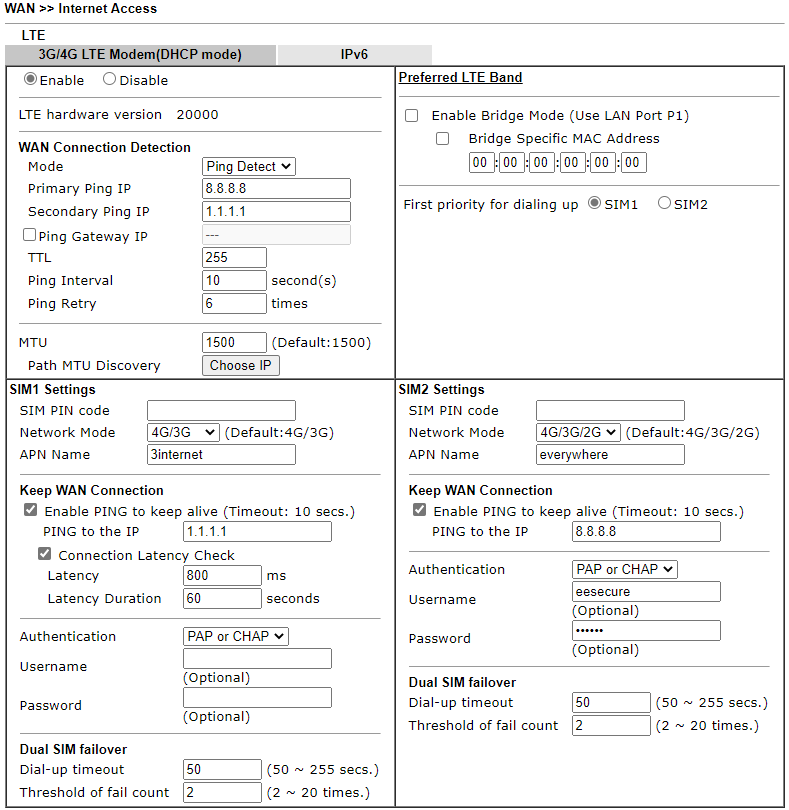 Bên cạnh hai cổng WAN Gigabit, DrayTek Vigor2927Lac còn tích hợp modem 4G LTE với hai khe SIM hoạt động theo cơ chế dự phòng thông minh (Dual-SIM Failover). Khi SIM chính gặp sự cố như mất kết nối, độ trễ cao hoặc mạng gián đoạn, hệ thống sẽ tự động chuyển sang SIM phụ để duy trì đường truyền Internet ổn định và liên tục.