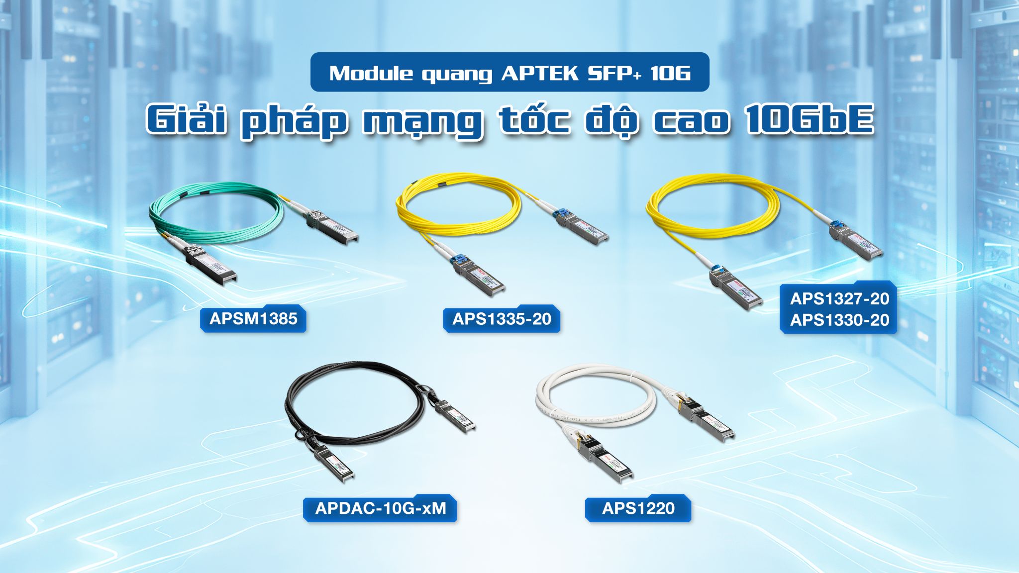 Module quang APTEK SFP+ 10G được sử dụng phổ biến cho các kết nối Uplink tốc độ cao trong mạng doanh nghiệp, trung tâm dữ liệu, kết nối mạng trục giữa các tòa nhà, cũng như trong các hệ thống MAN/WAN và hạ tầng viễn thông.