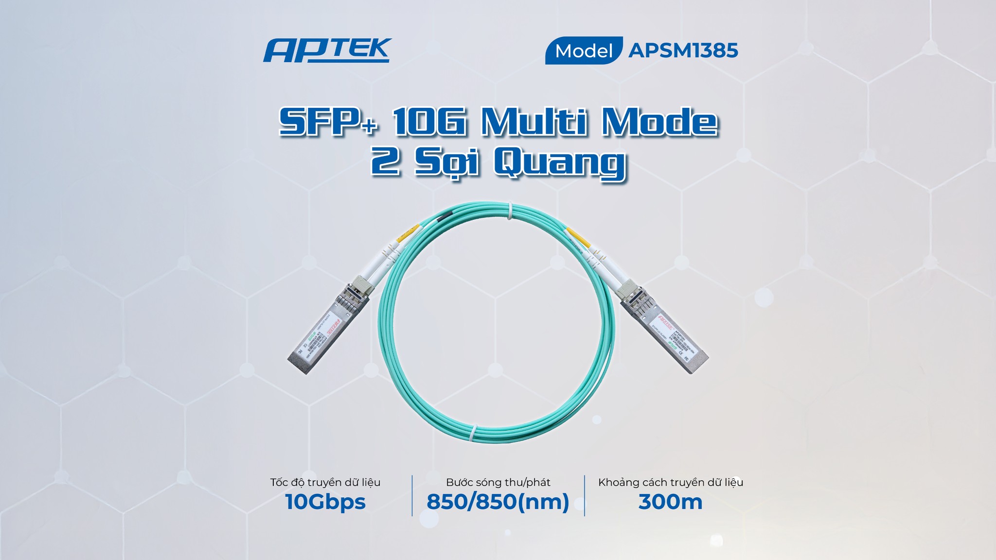 APTEK APSM1385 là module quang SFP+ 10G chuẩn Multi-mode, được sử dụng như một giải pháp kết nối Uplink 10G tốc độ cao giữa Switch Access và Switch Core (hoặc Router). Với băng thông đạt mức 10 Gbps, APSM1385 giúp chuyển tiếp hiệu quả toàn bộ lưu lượng từ các thiết bị đầu cuối, nhất là các Access Point Wi-Fi 6/7 luôn hoạt động ở mức hiệu năng tối đa, tránh xảy ra hiện tượng nghẽn cổ chai cục bộ.