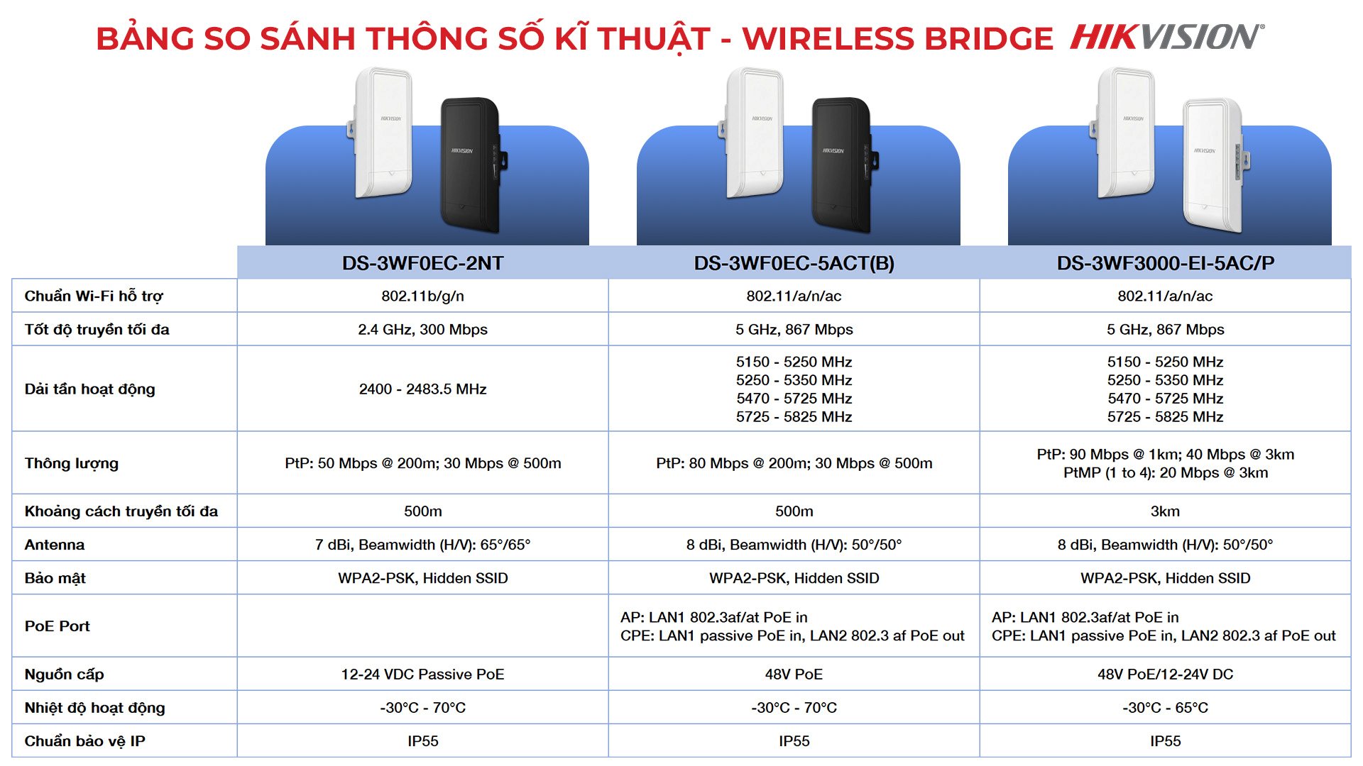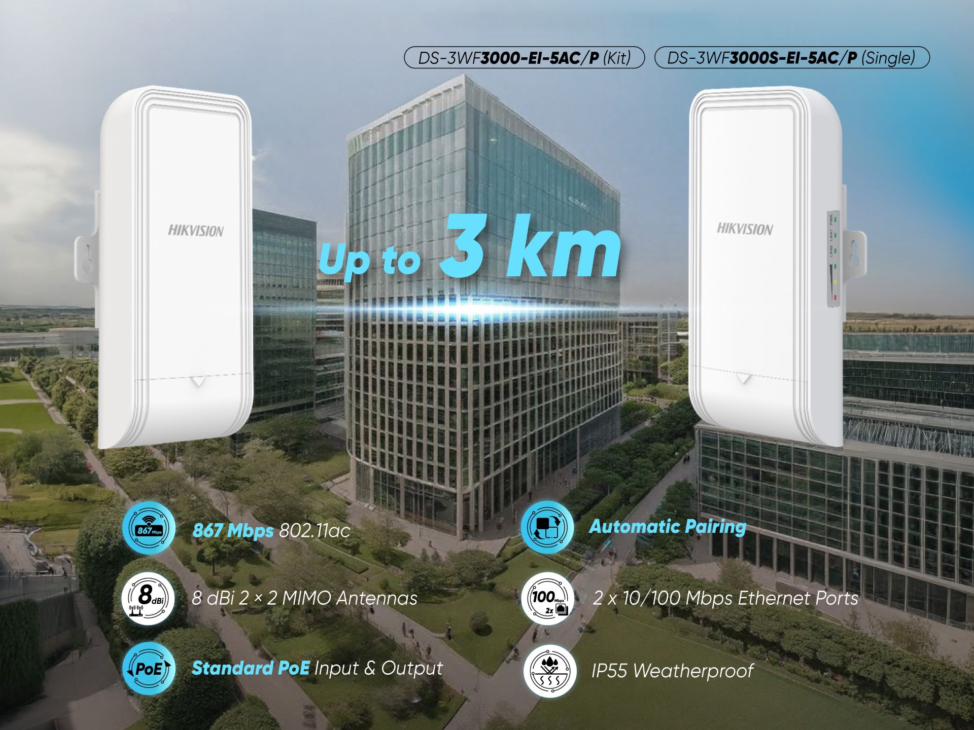 - DS-3WF3000-EI-5AC/P - Giải pháp kết nối ngoài trời tầm xa 3km.