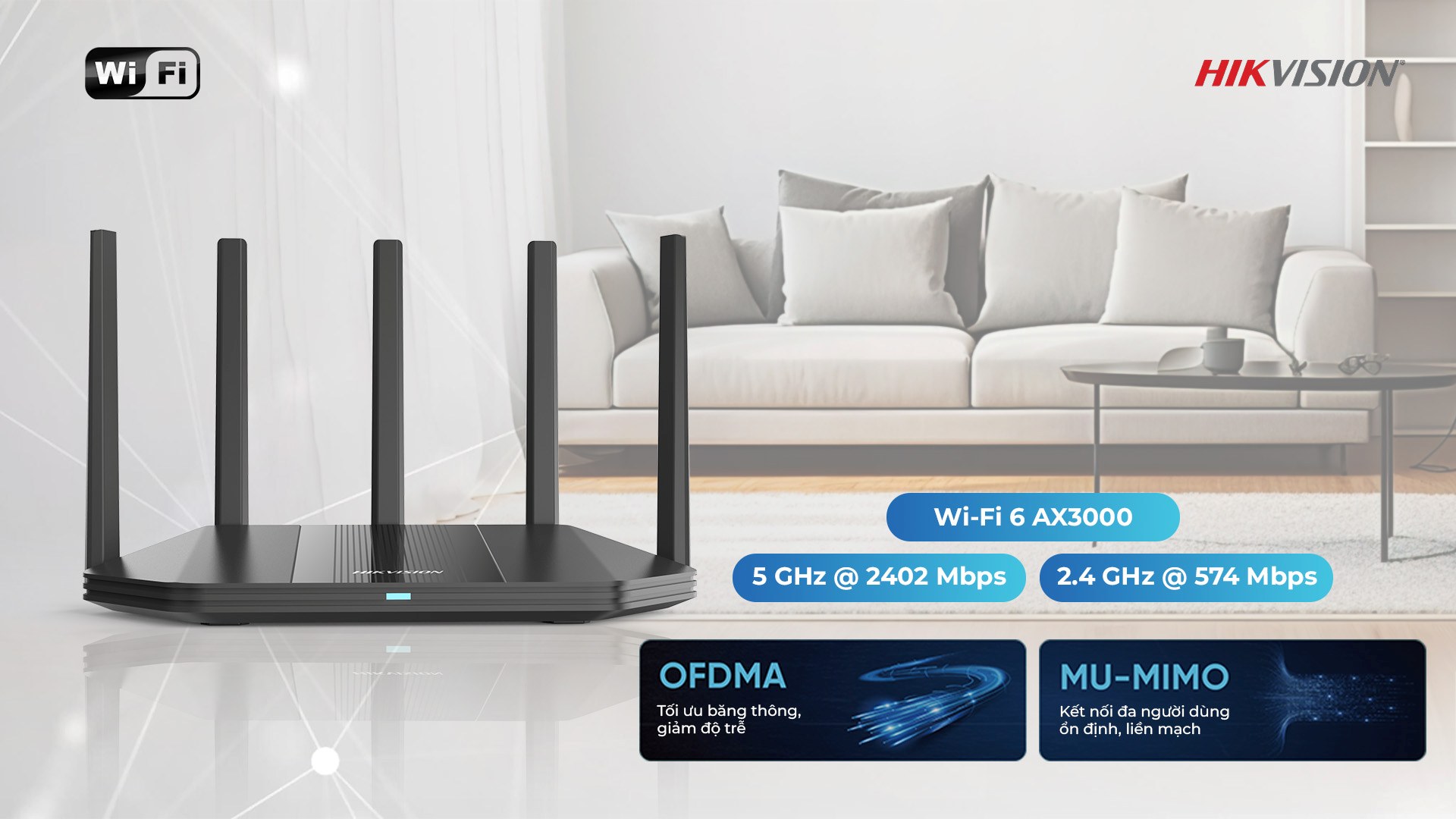 Router Wi-Fi 6 AX3000, 5 ăng-ten, chịu tải cao, quản lý Cloud với Hik-Connect
