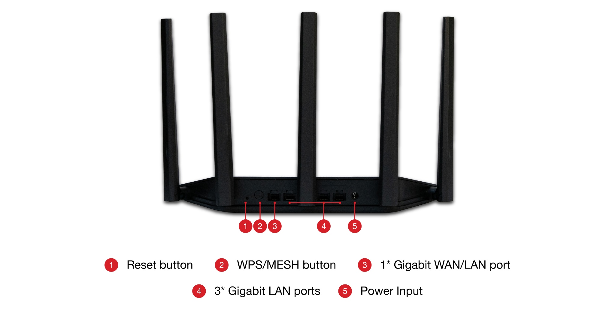 | Ports | 3× LAN 10/100/1000 Mbps 1× WAN 10/100/1000 Mbps |