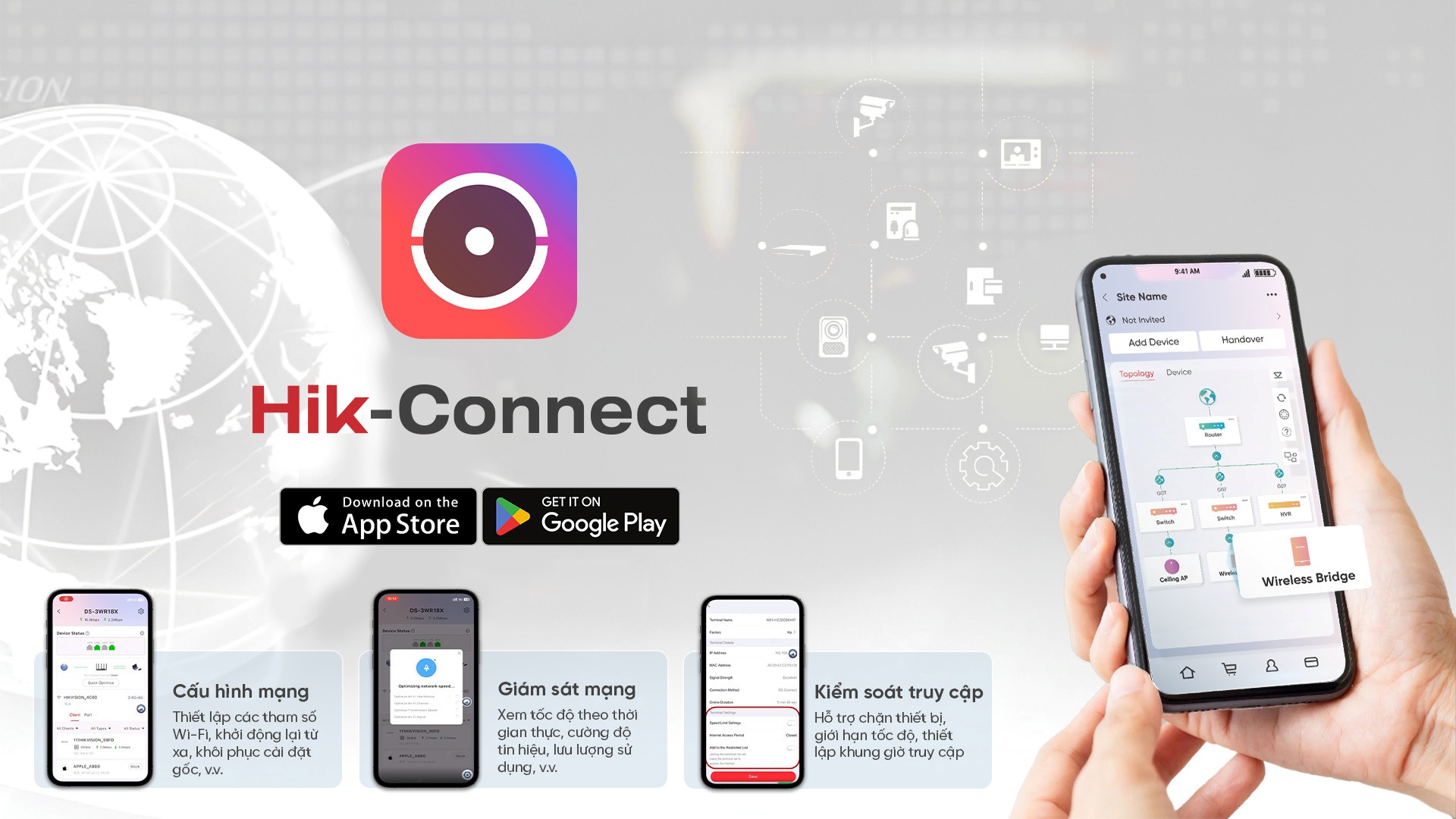 Hik-Connect cho phép người dùng quản lý và giám sát thiết bị từ xa qua Cloud mà không đòi hỏi cấu hình phức tạp. Thông qua Hik-Connect, người dùng có thể kiểm tra trạng thái thiết bị, cấu hình mạng, theo dõi lưu lượng truy cập và nhận cảnh báo theo thời gian thực. Nhờ đó, việc quản lý và vận hành mạng trở nên đơn giản hơn, phù hợp cho cả người dùng cá nhân lẫn doanh nghiệp cần quản lý thiết bị từ nhiều địa điểm khác nhau.
