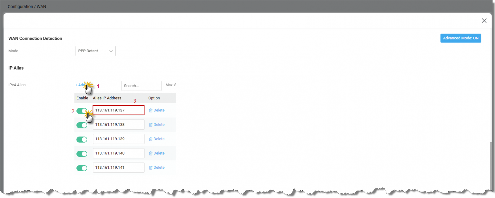 Các IP Tĩnh này khi cấu hình IP Alias sẽ được gán vào cổng WAN router. Khi muốn sử dụng cần thực hiện thêm các bước khác theo từng yêu cầu