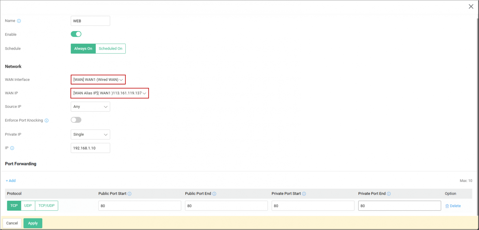WAN Interface: chọn WAN kết nối đường truyền có IP tĩnh