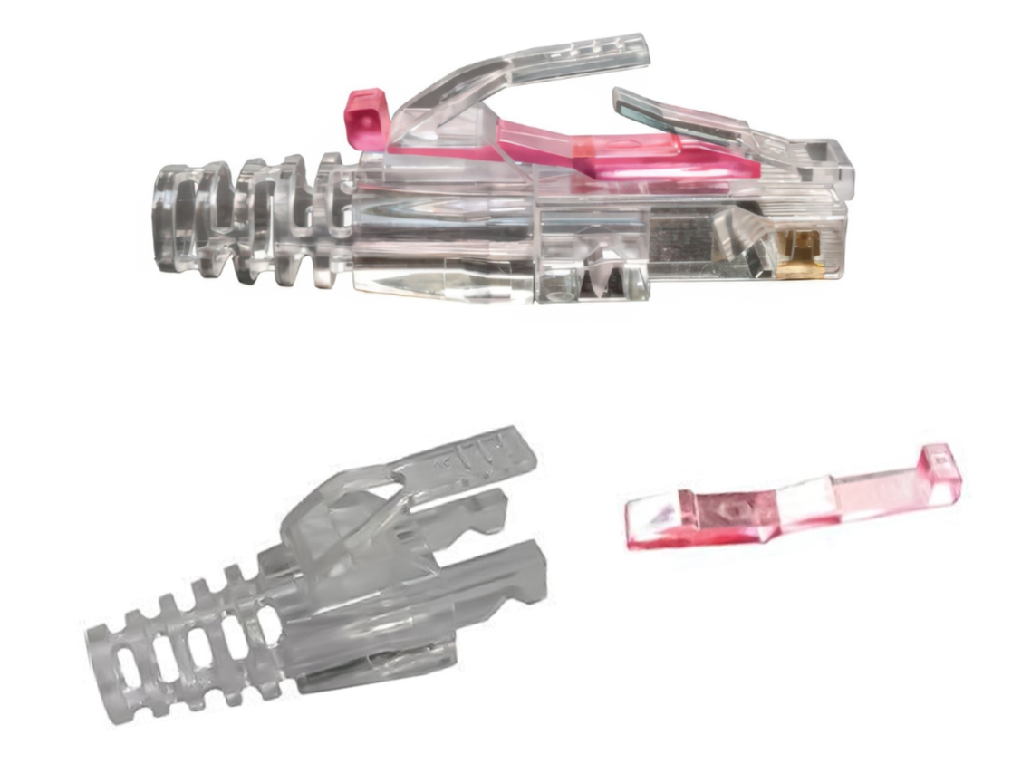 Thiết kế DINTEK ezi-LOCK với hai thành phần gồm đầu chụp bảo vệ hạt mạng và chốt khóa rời, tương thích hoàn toàn với đầu mạng (hạt mạng) RJ45 chuẩn Cat.6. Khi cần cố định đầu cáp mạng, người dùng chỉ việc chèn chốt khóa vào khe sẵn có của đầu chụp để ngăn lẫy nhựa hạt mạng bị nhấn xuống. Nhờ sự kết hợp cơ học đơn giản mà hiệu quả, tránh đầu mạng RJ45 bị rơi tuột hoặc vô tình rút nhầm khi sử dụng. Muốn rút cáp, người dùng phải tháo chốt khóa trước, mới có thể nhấn lẫy và rút đầu RJ45 khỏi cổng mạng.