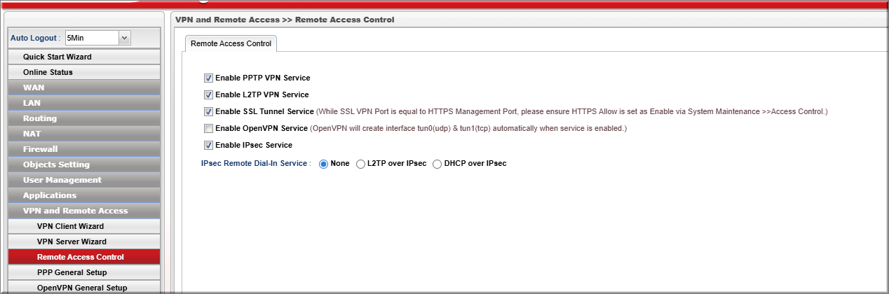 - Trên Vigor2960: Vào VPN and Remote Access>>> Connection Management