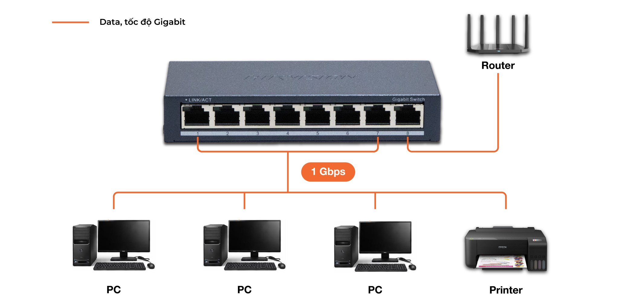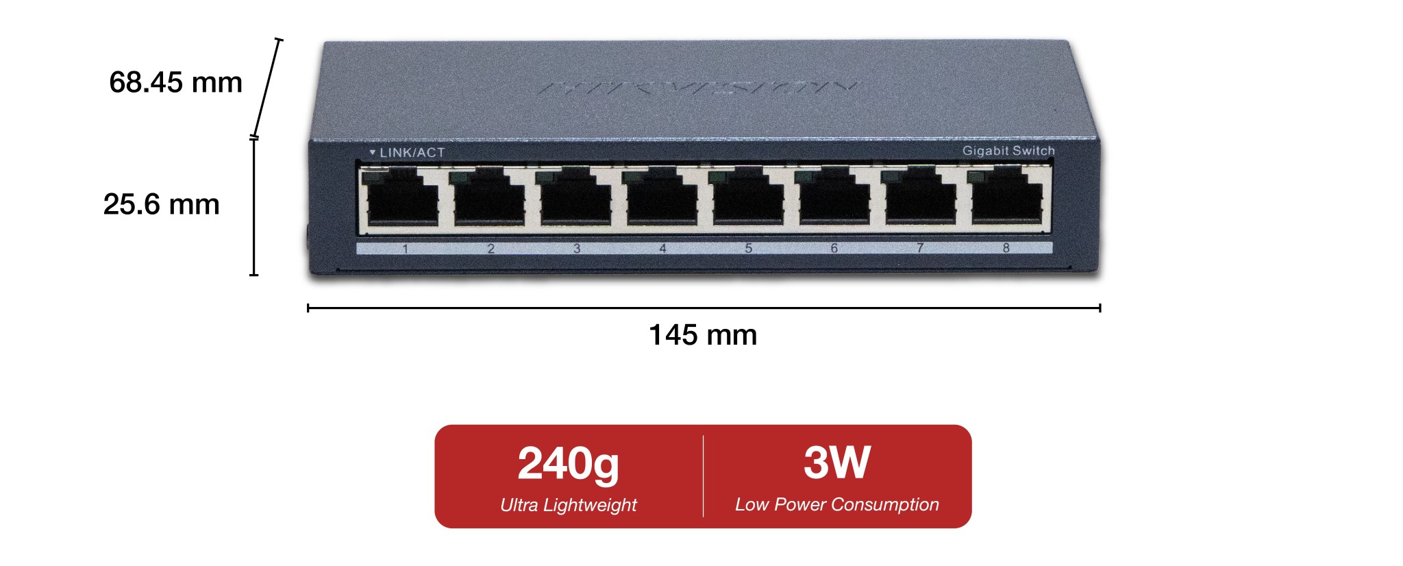 Switch 8 cổng LAN Gigabit, thiết kế nhỏ gọn, vỏ kim loại, tiết kiệm điện
