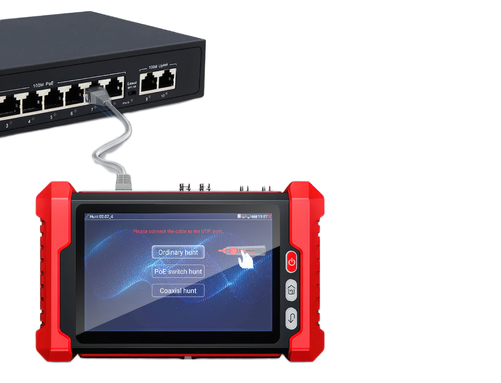 - Cable Tracking. Hỗ trợ chế độ dò Analog lẫn Digital giúp xác định cáp hiệu quả giữa một hệ thống cáp và thiết bị mạng mật độ cao. Chế độ PoE Switch có khả năng lọc nhiễu tốt hơn, hỗ trợ tìm cáp cả khi đang kết nối vào Switch PoE hoạt động.