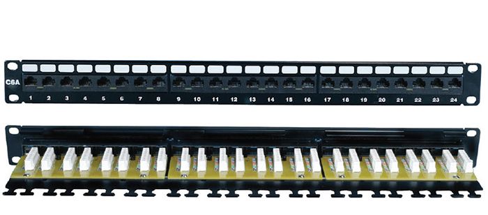 Patch panel là một bảng cắm, thông qua đó các cáp sẽ kết nối các máy trong mạng LAN cho gọn gàng hơn so với việc cắm trực tiếp, đồng thời cũng dễ bảo quản và sửa chữa khi có sự cố. Được sử dụng cho tất cả các cáp mạng đi âm tường , một đầu nối với Office Box , đầu kia được đấu với Patch Panel.
