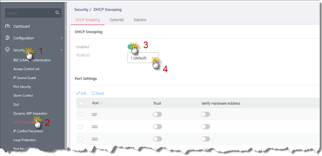 Sau đây là một ví dụ cụ thể cho tính năng DHCP-Snooping trên VigorSwitch