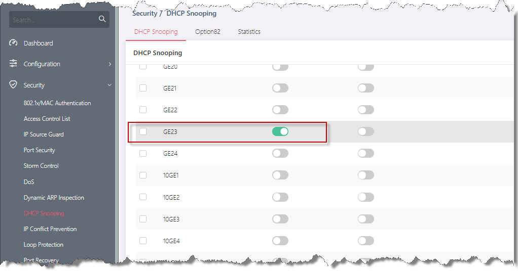 Chỉ có DHCP Server gắn vào port 23 mới có quyền cấp DHCP cho máy tính.