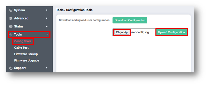 - Đợi thiết bị reboot để hoàn tất quá trình restore cấu hình.