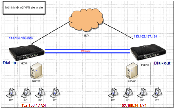 - Remote Network and Subnet Mask: điền lớp mạng LAN của Router VPN Client (ví dụ 192.168.36.1/24)