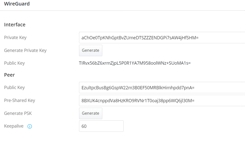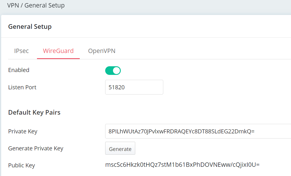 - Nhấn Generate khởi tạo Public Key và Private Key cho profie VPN