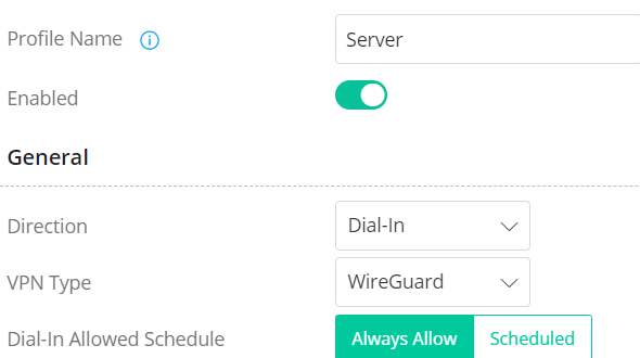 3. Thiết lập profile WireGuard VPN LAN to LAN trên Router VPN Server