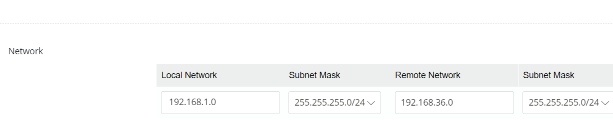 - Local Network and Subnet Mask: điền lớp mạng nội bộ Router VPN Client (ví dụ 192.168.36.0/24)